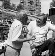 Kwiecień 1984, Radom, Polska. Występ podczas eliminacji do XX Festiwalu Piosenki Radzieckiej. 1. z lewej konferansjer Tadeusz Sznuk. Fot. Romuald Broniarek, zbiory Ośrodka KARTA