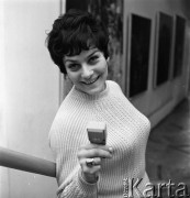 Czerwiec 1971, Zielona Góra, Polska. Piosenkarka Izabela Schütz (później Trojanowska) - jedna z laureatek VII Festiwalu Piosenki Radzieckiej w przerwie między występami. Fot. Romuald Broniarek, zbiory Ośrodka KARTA.