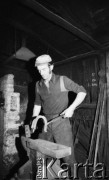 Wrzesień 1989, Korytów k/Żyrardowa, woj. Skierniewice, Polska Kuźnia w Korytowie, kowal podczas pracy Fot. Jarosław Tarań, zbiory Ośrodka KARTA [89-87]