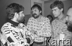 2-4.03.1990, Wrocław, Polska. II Walne Zebranie Delegatów NSZZ "Solidarność" Regionu Dolny Śląsk. Włodzimierz Mękarski rozmawia z Władysławem Frasyniukiem. Fot. Mieczysław Michalak, zbiory Ośrodka KARTA