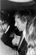 28-29.03.1981, Jarosław, Polska. I Krajowy Ogólnopolski Zjazd NSZZ RI "Solidarność".Od prawej siedzą Gabriel Janowski, NN, Artur Balazs, NN, Andrzej Stelmachowski, NN, NN. Fot. NN, zbiory Ośrodka KARTA/Independent Polish Agency (IPA) przekazał Józef Lebenbaum