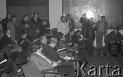 8-9.03.1981, Poznań, Polska. Zjazd zjednoczeniowy NSZZ "Solidarność" RI w gmachu Opery Poznańskiej. Dziennikarze na konferencji prasowej działaczy Solidarności. Fot. Lech Ścibor-Rylski, zbiory Ośrodka KARTA/Independent Polish Agency (IPA) przekazał Józef Lebenbaum
