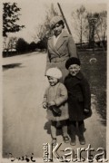 1935, Brześć, woj. poleskie, Polska. Twierdza brzeska - codzienne szkolenie żołnierzy służby zasadniczej, oficerów oraz podchorążych rezerwy. Żołnierze stoją przy samochodzie wojskowym, w tle widoczne są drzewa. Fot. Józef Tarań, Fundacja Ośrodka KARTA kolekcję zdjęć przekazała Lucyna Kumiszczo