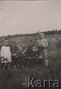 Lata 20-te lub 30-te, Załucze, Polska. Irena i Kazimierz Grzybowscy w ogródku. Fot. NN, zbiory Ośrodka KARTA, Pogotowie Archiwalne [PAF_052], udostępnił Wiesław Gawinek
