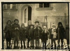 Lata 30., Koniszcze, gm. Górniki, pow. Kowel, woj. wołyńskie, Polska. Przedszkole Polskiej Macierzy Szkolnej, grupa dzieci wraz z nauczycielką. Fot. NN, Instytut Polski i Muzeum im. gen. Sikorskiego w Londynie