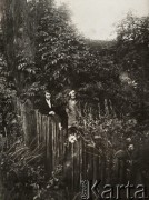 Lata 30., Śmigiel, pow. Kościan, woj. poznańskie, Polska. Na zdjęciu chora Jutta Ciecińska, obok Edyta Ciecińska i jej narzeczony Stanisław Szczepaniak, żołnierz 7 Pułku Strzelców Konnych Wielkopolskich. Zdemobilizowany po Kampanii Wrześniowej wrócił do rodzinnej Krępy skąd wywieziony został przez Niemców do obozu koncentracyjnego, poczatkowo Flossenburg, potem Dachau. Zamordowany prawdopodobnie w 1944 roku. Fot. NN, zbiory Ośrodka KARTA, Pogotowie Archiwalne [PA_033], przekazał Piotr Balcer