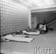 Październik 1980, Warszawa, Polska. Bankiet w mieszkaniu Elżbiety i Pawła Bąkowskich z okazji 100 publikacji Niezależnej Oficyny Wydawniczej NOWa, od lewej m.in.: Jacek Kaczmarski, Grzegorz Boguta, Julian Stryjkowski, Piotr Szwajcer, Ewa Milewicz, Joanna Walc, Wiktor Woroszylski, na podłodze siedzą: Hanna Bartoszewicz, Andrzej Mietkowski, Erazm Ciołek, Ewa Nawój, Stanisław Muskat. Fot. Tomasz Abramowicz, zbiory Ośrodka KARTA