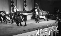 Lipiec 1958, Warszawa, Polska. Występ Zespołu Pieśni i Tańca "Śląsk" w Sali Kongresowej - tancerze na scenie. Fot. Romuald Broniarek, zbiory Ośrodka KARTA