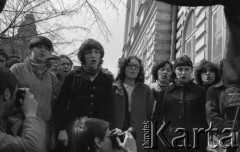 22.04.1981, Warszawa, Polska. Obchody rocznicy Marca '68 na Uniwersytecie Warszawskim - odsłonięcie na ścianie Pałacu Uruskich (Czetwertyńskich) tablicy upamiętniającej wiec studentów domagających się wolności słowa w marcu 1968. Chór akademicki śpiewa Gaudeamus igitur. Fot. NN, zbiory Ośrodka KARTA/Independent Polish Agency (IPA) przekazał Józef Lebenbaum