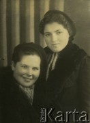 Druga połowa lat 30. do 1941, Kozienice, Polska. Portret dwóch dziewczyn w paltach i beretach. Zdjęcie wykonane w atelier fotograficznym żydowskiego fotografa Chaima Bernemana. Przed wojną zakład mieścił się w Kozienicach na rogu ulic Warszawskiej i Maciejowickiej, przed wybuchem wojny albo już w czasie niemieckiej okupacji został przeniesiony na ulicę Lubelską 13. Cała kolekcja jest datowana na okres od drugiej połowy lat 30-tych do roku 1941, kiedy Chaim Berneman wraz z rodziną został zesłany do obozu pracy w Wolanowie. Berneman zmarł po ucieczce z obozu. Fot. Chaim Berneman (Chaim Berman), zbiory Ośrodka KARTA