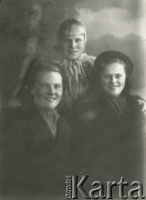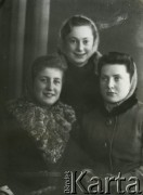 Druga połowa lat 30. do 1941, Kozienice, Polska. Portret trzech młodych kobiet w zimowych ubraniach. Zdjęcie wykonane w atelier fotograficznym żydowskiego fotografa Chaima Bernemana. Przed wojną zakład mieścił się w Kozienicach na rogu ulic Warszawskiej i Maciejowickiej, przed wybuchem wojny albo już w czasie niemieckiej okupacji został przeniesiony na ulicę Lubelską 13. Cała kolekcja jest datowana na okres od drugiej połowy lat 30-tych do roku 1941, kiedy Chaim Berneman wraz z rodziną został zesłany do obozu pracy w Wolanowie. Berneman zmarł po ucieczce z obozu. Fot. Chaim Berneman (Chaim Berman), zbiory Ośrodka KARTA