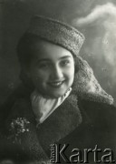 Druga połowa lat 30. do 1941, Kozienice, Polska. Portret młodej kobiety w zimowym palcie i toczku na głowie. Zdjęcie wykonane w atelier fotograficznym żydowskiego fotografa Chaima Bernemana. Przed wojną zakład mieścił się w Kozienicach na rogu ulic Warszawskiej i Maciejowickiej, przed wybuchem wojny albo już w czasie niemieckiej okupacji został przeniesiony na ulicę Lubelską 13. Cała kolekcja jest datowana na okres od drugiej połowy lat 30-tych do roku 1941, kiedy Chaim Berneman wraz z rodziną został zesłany do obozu pracy w Wolanowie. Berneman zmarł po ucieczce z obozu. Fot. Chaim Berneman (Chaim Berman), zbiory Ośrodka KARTA