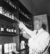 Styczeń 1958, Bielsk Podlaski, woj. Białystok, Polska. Aptekarz stoi przy półce z lekarstwami. Fot. Romuald Broniarek, zbiory Ośrodka KARTA