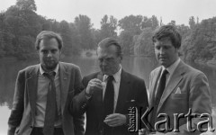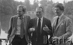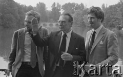 6.06.1981, Warszawa, Polska. Wizyta Czesława Miłosza w Polsce po otrzymaniu Literackiej Nagrody Nobla - spotkanie z poetą w Pałacu na Wodzie w Łazienkach Królewskich. Czesław Miłosz w towarzystwie synów, Piotra Miłosza (z lewej strony) i Antoniego Miłosza (z prawej strony). Na pierwszym planie (bokiem) stoi Józef Tejchma, minister kultury i sztuki. Fot. NN, zbiory Ośrodka KARTA/Independent Polish Agency (IPA) przekazał Józef Lebenbaum