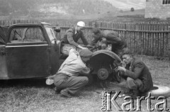 Lata 50., Bieszczady, Polska. Rolnicy na terenie swojego gospodarstwa. Fot. Jerzy Konrad Maciejewski, zbiory Ośrodka KARTA.