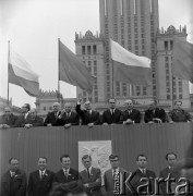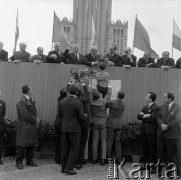 1.05.1980, Warszawa, Polska. Obchody Święta Pracy. Przywódcy partyjni i przedstawiciele władz obserwują pochód z trybuny honorowej na placu Defilad. Fot. Edward Grochowicz, zbiory Ośrodka KARTA