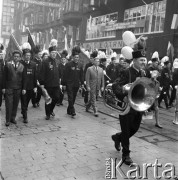 1.05.1969, Katowice, Polska. Pochód pierwszomajowy na ulicach miasta, górnicy w galowych strojach. Fot. Kazimierz Seko, zbiory Ośrodka KARTA
