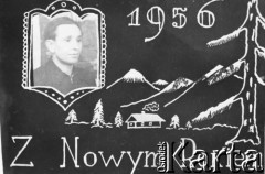 1954, ZSRR. Narysowana kartka pocztowa z napisem "S nowym godom 1954". Fot. NN, zbiory Ośrodka KARTA, udostępnił Konstanty Starzyński