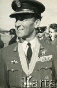 1.01.1943, Northolt, Anglia, Wielka Brytania. Kpt. Kazimierz Rutkowski, pilot 306 Dywizjonu Myśliwskiego "Toruńskiego". Spotkanie na lotnisku po zestrzeleniu 500 i 501 niemieckiego samolotu przez ppor. Henryka Pietrzaka i por. Zdzisława Langhamera. Fot. NN, Instytut Polski i Muzeum im. gen. Sikorskiego w Londynie