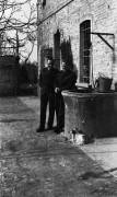 1950, Anglia, Wielka Brytania. Mężczyźni przed barakiem w polskim obozie, 1. z lewej Kazimierz Kot, brat Leszka Kota. Fot. NN, zbiory Leszka Kota, reprodukcje cyfrowe w Ośrodku KARTA w Warszawie i w Instytucie Polskim i Muzeum im. gen. Sikorskiego w Londynie.