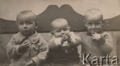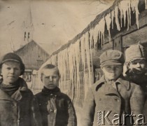 1938, Wielka Głusza, pow. Kamień Koszyrski, Poleskie woj., Polska. Dzieci bawiące się przed chatą. Fot. Eugeniusz Wilczyński, zbiory Ośrodka KARTA, kolekcję Eugeniusza Wilczyńskiego udostępniła Marta Simon.