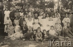 Lata 30-te, Brześć nad Bugiem, Polska. Rodzina w ogrodzie przed domem. Druga z lewej siedzi Feliksa Skorupska, w tylnym rzędzie od prawej Irena Skorupska, Władysław Skorupski, Kazik Skorupski. Fot. NN, zbiory Ośrodka KARTA, album Ireny Skorupskiej udostępniła Agata Witerska