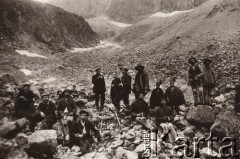 Przełom XIX i XX wieku, brak miejsca. Wypadek samochodowy, na pierwszym planie ciało ofiary, na drugim - policja, świadkowie oraz rozbity samochód. Fot. NN, zbiory Ośrodka Karta, udostępniło Warszawskie Towarzystwo Cyklistów (WTC).