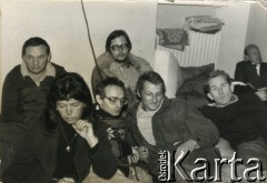 3-10.10.1979, Warszawa, Polska. Głodówka solidarnościowa członków i sympatyków Komitetu Samoobrony Społecznej KOR (KSS KOR) w kościele Św. Krzyża w obronie więźniów politycznych w Czechosłowacji oraz aresztowanych Polaków: Adama Wojciechowskiego i Edmunda Zadrożyńskiego. Siedzą z przodu: Anka Kowalska, Jan Lityński, Jacek Bierezin, Andrzej Czuma; pod ścianą: Jerzy Markuszewski i Mariusz Wilk. Fot. NN, kolekcja Jacka Kuronia, zbiory Ośrodka KARTA.