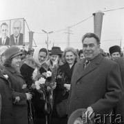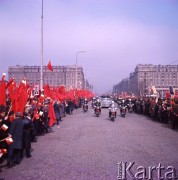 22.07.1959, Warszawa, Polska. I sekretarz KC KPZR Nikita Chruszczow (w samochodzie, w białym kapeluszu) wita się z mieszkańcami stolicy, stojącymi na trasie przejazdu delegacji radzieckiej. Fot. Jerzy Konrad Maciejewski, zbiory Ośrodka KARTA