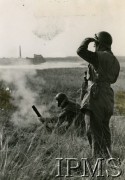 1943-1946, Wielka Brytania. Lotnik z personelu naziemnego Polskich Sił Powietrznych podczas składania się do strzału do rzutków. Fot. Zenon Brejwo, zbiory Ośrodka KARTA