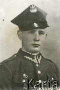 Druga połowa lat 30. do 1941, Kozienice, Polska. Portret chłopaka w marynarce, jasnej koszuli i krawacie. Zdjęcie wykonane w atelier fotograficznym żydowskiego fotografa Chaima Bernemana. Przed wojną zakład mieścił się w Kozienicach na rogu ulic Warszawskiej i Maciejowickiej, przed wybuchem wojny albo już w czasie niemieckiej okupacji został przeniesiony na ulicę Lubelską 13. Cała kolekcja jest datowana na okres od drugiej połowy lat 30-tych do roku 1941, kiedy Chaim Berneman wraz z rodziną został zesłany do obozu pracy w Wolanowie. Berneman zmarł po ucieczce z obozu. Fot. Chaim Berneman (Chaim Berman), zbiory Ośrodka KARTA