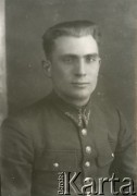 Druga połowa lat 30. do 1941, Kozienice, Polska. Portret młodego mężczyzny w marynarce, jasnej koszuli i krawacie. Zdjęcie wykonane w atelier fotograficznym żydowskiego fotografa Chaima Bernemana. Przed wojną zakład mieścił się w Kozienicach na rogu ulic Warszawskiej i Maciejowickiej, przed wybuchem wojny albo już w czasie niemieckiej okupacji został przeniesiony na ulicę Lubelską 13. Cała kolekcja jest datowana na okres od drugiej połowy lat 30-tych do roku 1941, kiedy Chaim Berneman wraz z rodziną został zesłany do obozu pracy w Wolanowie. Berneman zmarł po ucieczce z obozu. Fot. Chaim Berneman (Chaim Berman), zbiory Ośrodka KARTA