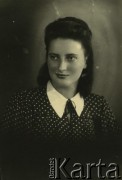Druga połowa lat 30. do 1941, Kozienice, Polska. Portret dziewczyny w bluzce z marynarskim kołnierzem. Zdjęcie wykonane w atelier fotograficznym żydowskiego fotografa Chaima Bernemana. Przed wojną zakład mieścił się w Kozienicach na rogu ulic Warszawskiej i Maciejowickiej, przed wybuchem wojny albo już w czasie niemieckiej okupacji został przeniesiony na ulicę Lubelską 13. Cała kolekcja jest datowana na okres od drugiej połowy lat 30-tych do roku 1941, kiedy Chaim Berneman wraz z rodziną został zesłany do obozu pracy w Wolanowie. Berneman zmarł po ucieczce z obozu. Fot. Chaim Berneman (Chaim Berman), zbiory Ośrodka KARTA