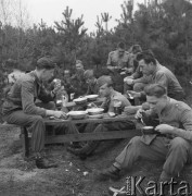 1958, Ławica k. Kłodzka, Polska. Obóz harcerski drużyny 121 z Żoliborza, n/z harcerze podczas posiłku. Fot. Marek Zürn, zbiory Fundacji Ośrodka KARTA