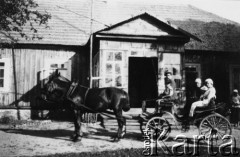 Początek XX wieku, brak miejsca, Polska pod zaborem rosyjskim. Powóz, koń ściągnięty lejcami przez powożącego. Fot. NN, zbiory Ośrodka Karta, udostępniło Warszawskie Towarzystwo Cyklistów (WTC).