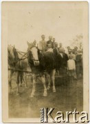 Lata 20., prawdopodobnie Republika Weimarska. Elżbieta Zajączkowska (stoi przed bryczką w środku) z przyjaciółmi podczas wycieczki. W bryczce siedzi jej córka Larysa Zajączkowska (z białą kokardą we włosach). Fot. NN, kolekcja Larysy Zajączkowskiej-Mitznerowej, zbiory Ośrodka KARTA