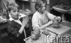 Jesień 1989, Żyrardów, woj. Skierniewice, Polska Pracownie plastyczne w Żyrardowskim Domu Kultury, dzieci lepiące zwierzaki z gliny. Fot. Jarosław Tarań, zbiory Ośrodka KARTA [89-81]