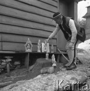 1975, Krościenko k/Szczawnicy, Polska Drewniane figurki w kubraczkach i słomianych czapkach. Fot. Jarosław Tarań, zbiory Ośrodka KARTA [75-103]