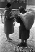 Marzec 1989, Nowy Targ, Polska Czwartkowy targ w Nowym Targu, kobiety sprzedające wełnę. Fot. Jarosław Tarań, zbiory Ośrodka KARTA [89-58]