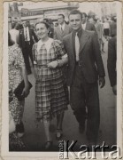 1945-1946, Lys-lez-Lannoy, Francja. Przechodnie na drodze. Fot. Jerzy Konrad Maciejewski, zbiory Ośrodka KARTA