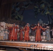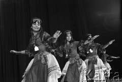 1942, Teheran, Iran. Występ w obozie dla polskich uchodźców, na scenie para tancerzy w strojach ludowych, w tle orkiestra. Fot. NN, Instytut Polski i Muzeum im. gen. Sikorskiego w Londynie [album Ludwika Naimskiego].