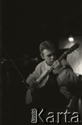 18-20.11.1988, Warszawa, Polska. Ogólnopolski Przegląd Piosenki Autorskiej OPPA, klub studencki Uniwersytetu Warszawskiego Hybrydy, n/z muzyk z zespołu towarzyszącego Renacie Przemyk. Fot. Artur Polit, zbiory Fundacji Ośrodka KARTA