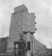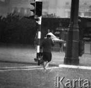 18.04.1968, Warszawa, Polska. Milicjant nadzoruje ruch uliczny. Widoczna jest również sygnalizacja świetlna. Fot. Jarosław Tarań, zbiory Ośrodka KARTA