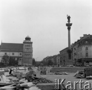 1964, Warszawa, Polska. Prace remontowe wokół Pomnika Bohaterów Warszawy na Placu Teatralnym. Fot. Romuald Broniarek/KARTA