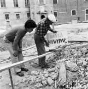 1970, Gdańsk, woj. gdańskie, Polska. Robotnicy przeprowadzają remont na Rynku Starego Miasta. Fot. Jerzy Konrad Maciejewski, zbiory Ośrodka KARTA