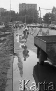 Lipiec 1962, Warszawa, Polska. Przechodnie na remontowanym chodniku na Pl. Konstytucji. Fot. Jarosław Tarań, zbiory Ośrodka KARTA [62-11]