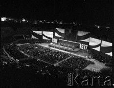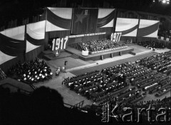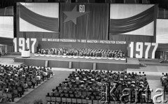Listopad 1977, Katowice, Polska. Wojewódzka Hala Widowiskowo-Sportowa, akademia z okazji 60-tej rocznicy Rewolucji Październikowej. Fot. Kazimierz Seko, zbiory Ośrodka KARTA