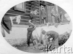 7.07.1918, Rostow, Rosja. Pacjenci szpitala, na dole z lewej siedzi Dominik Piotrowski. Fot. NN, zbiory Ośrodka KARTA, kolekcję Dominika Piotrowskiego udostępnił Jan Rutkiewicz