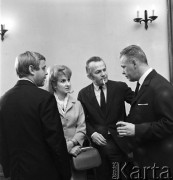 Lata 60., Warszawa, Polska. "Czterej pancerni i pies" - chłopcy i plansza na placu Defilad podczas festynu. Fot. Marek Zürn, zbiory Fundacji Ośrodka KARTA