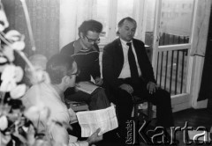 Listopad 1979, Warszawa, Polska. Spotkanie Rady Sygnatariuszy Ruchu Obrony Praw Człowieka i Obywatela w mieszkaniu Kazimierza Janusza; siedzą od lewej: Wojciech Ziembiński i Andrzej Czuma. Fot. Janusz Krzyżewski, zbiory Ośrodka KARTA